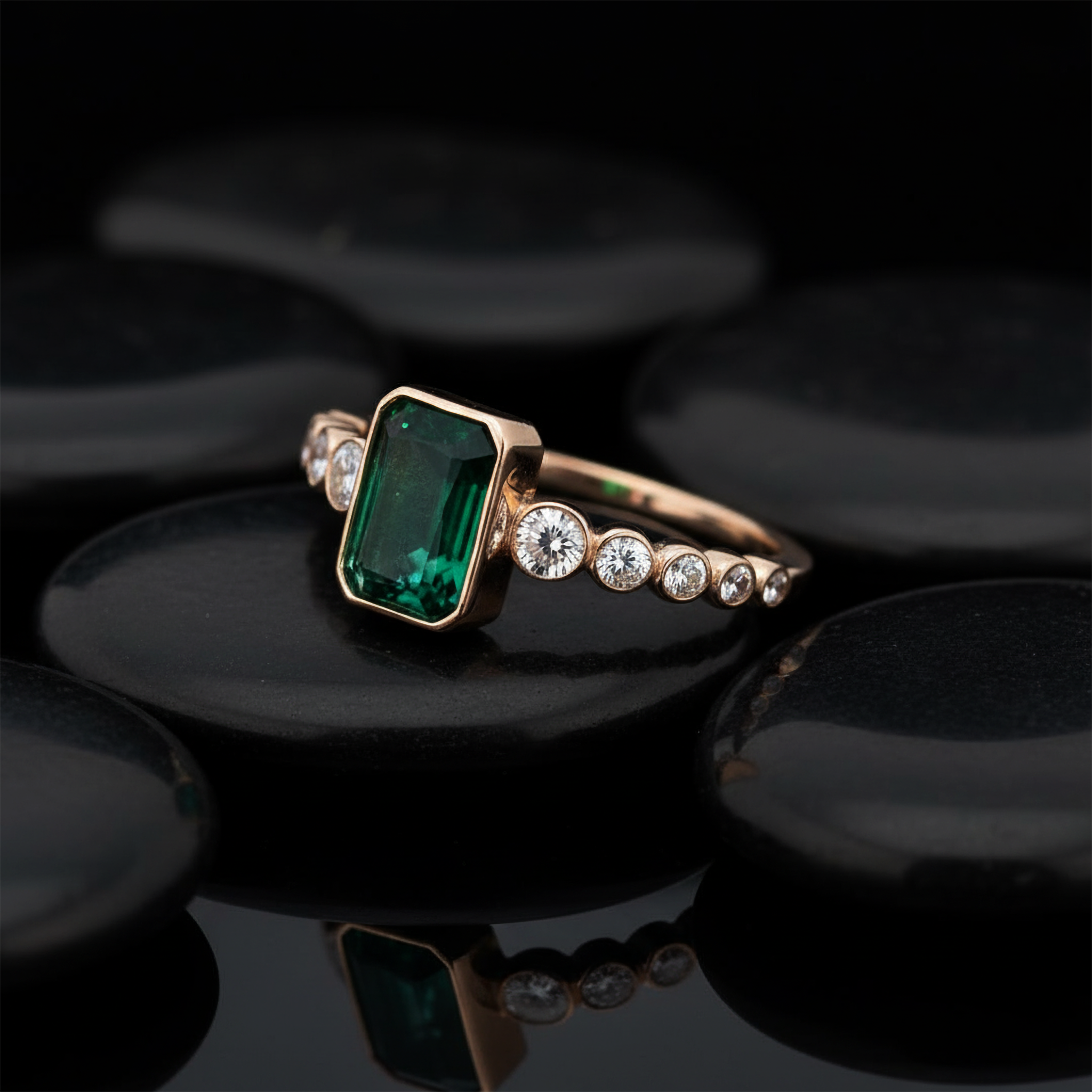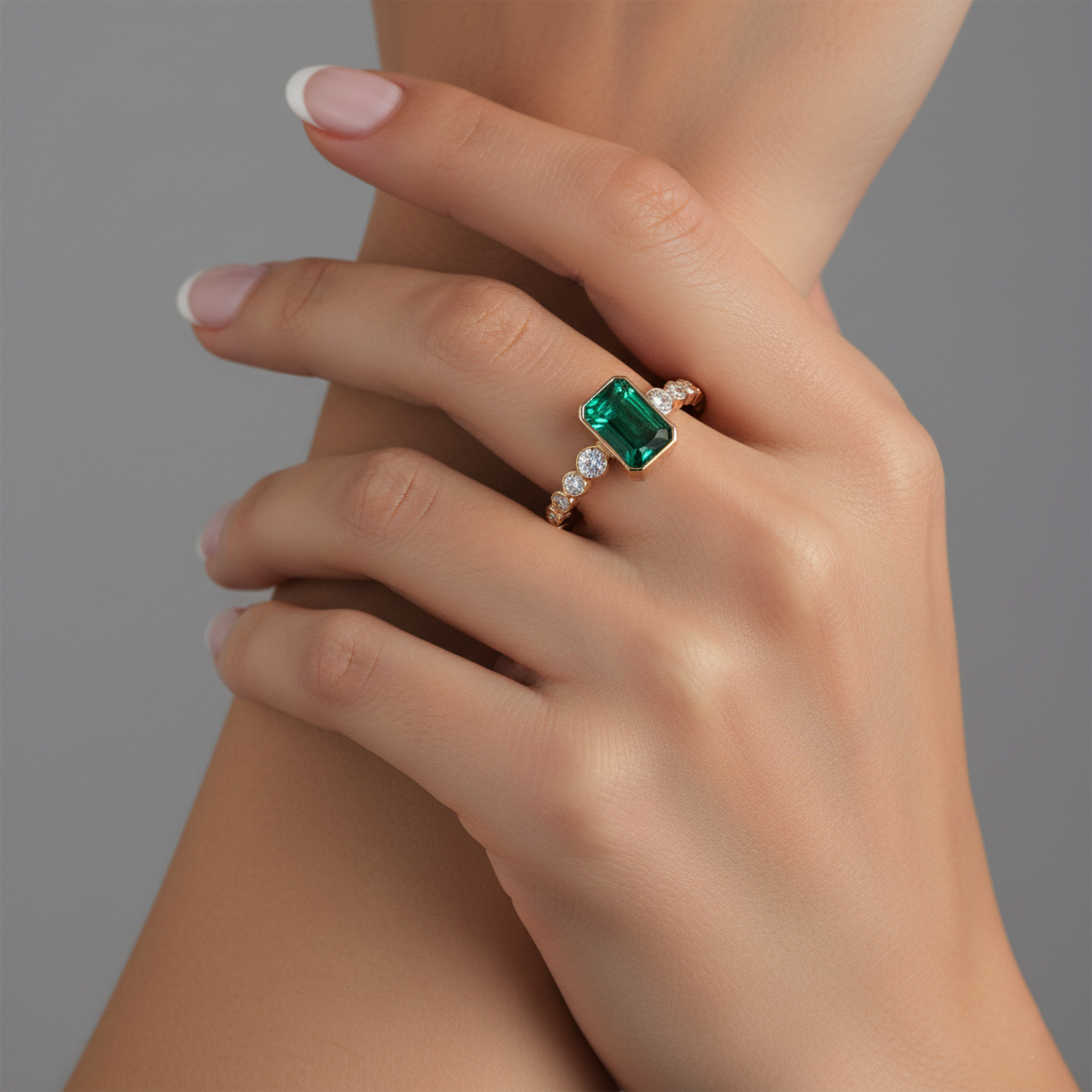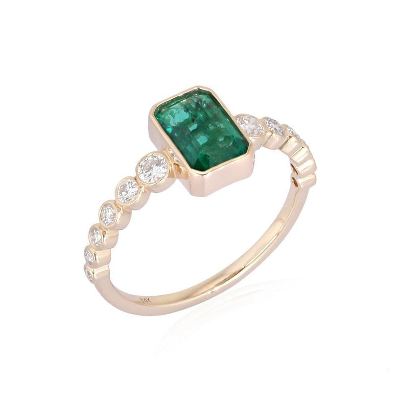 Bezel Emerald 14K (or 18k upon request) Diamond Band Ring