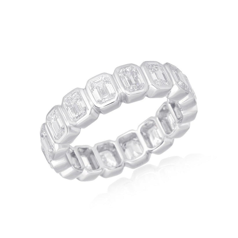 Bold Band 18K White Gold Emerald Cut Diamond Bezel Style Ring