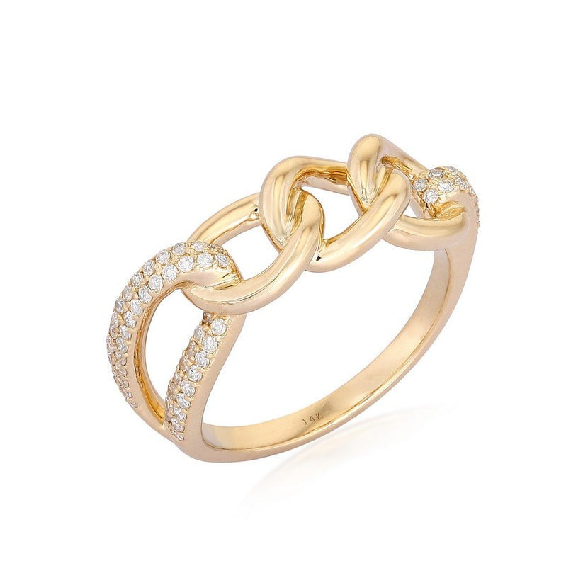 Diamond Embellished 14K (or 18k upon request) Yellow Gold Chain Band Ring