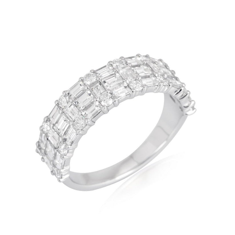 Elegant Cluster Band 14K (or 18k upon request) White Gold Baguette Diamond Ring