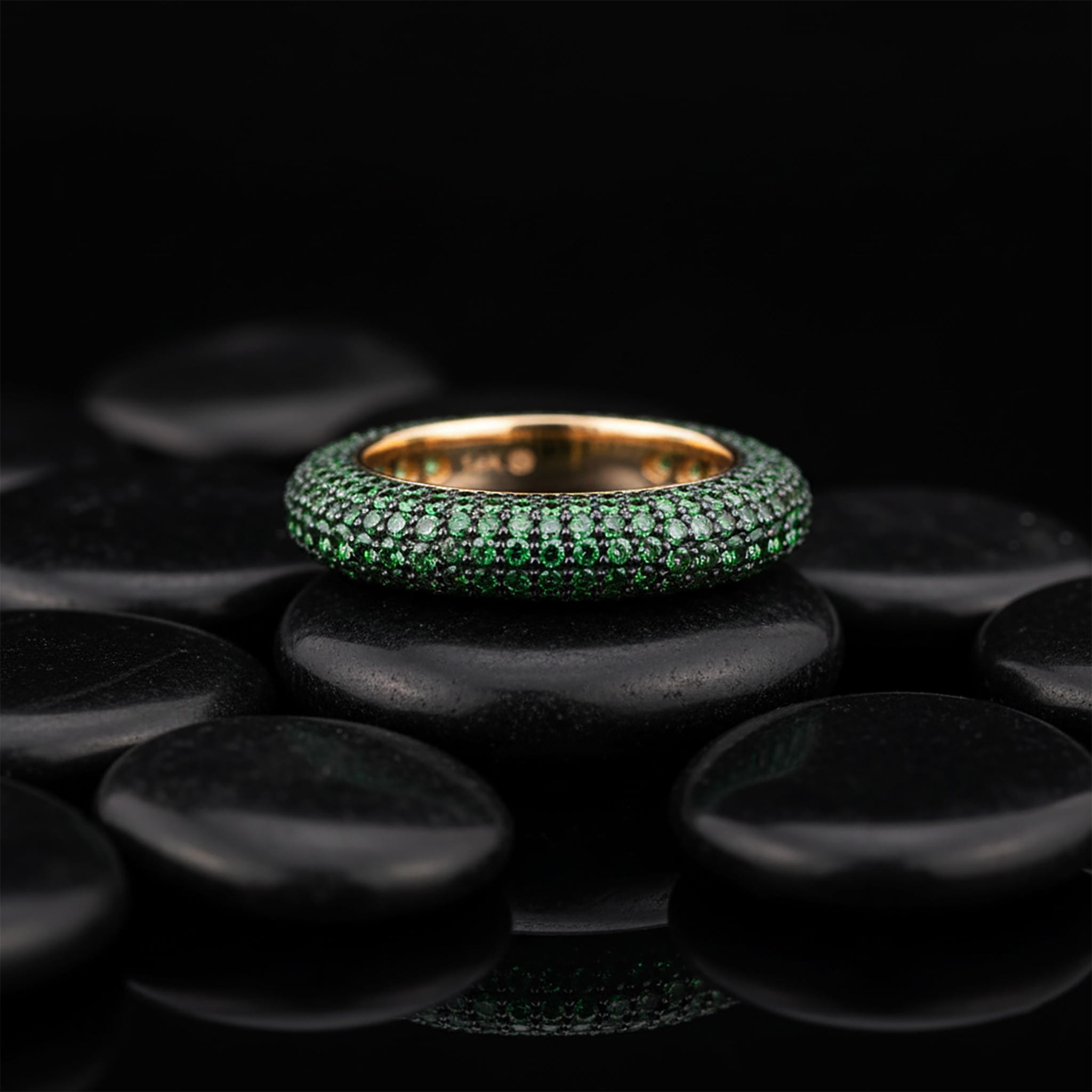 Pave Emerald Band 14K (or 18k upon request) Yellow Gold Dome Ring