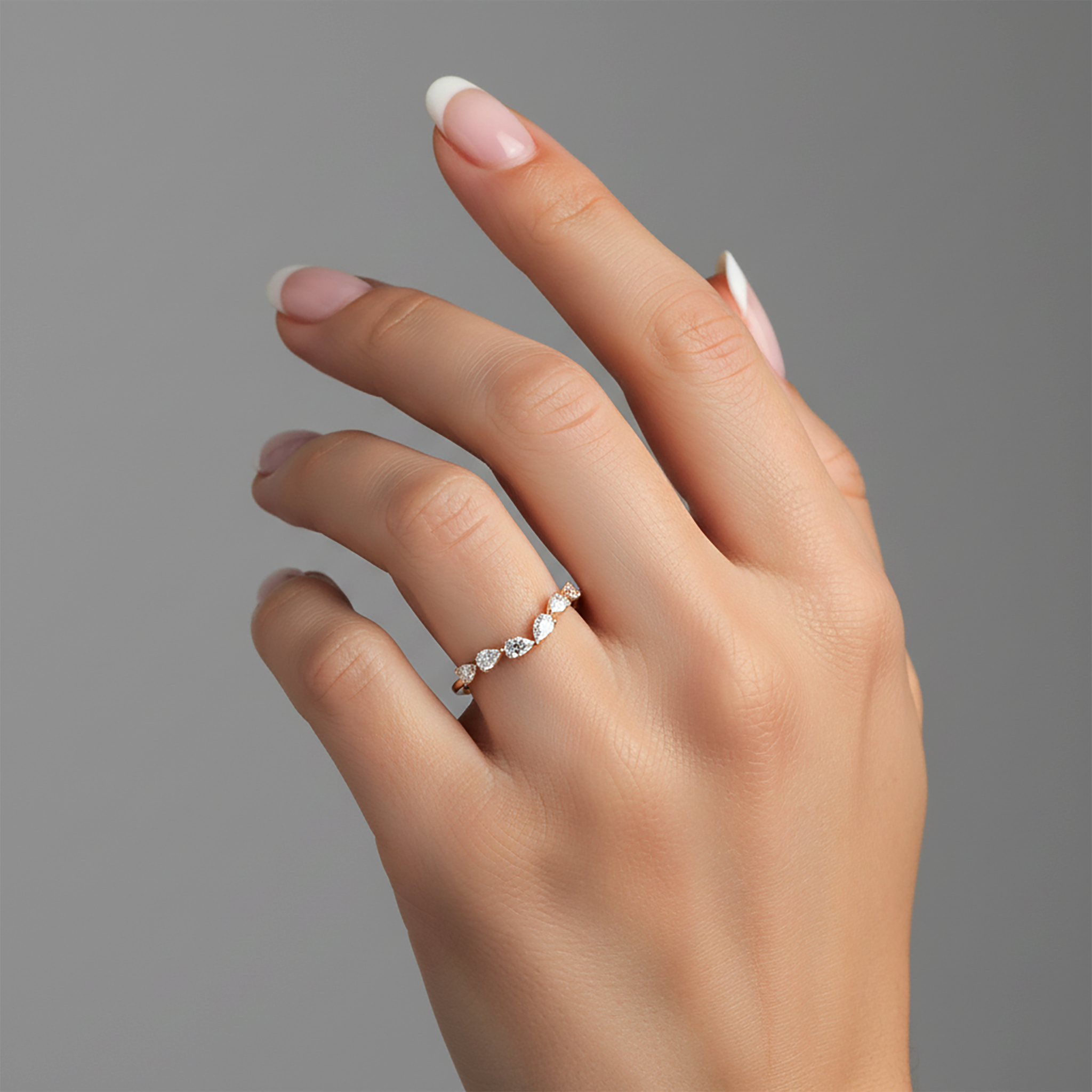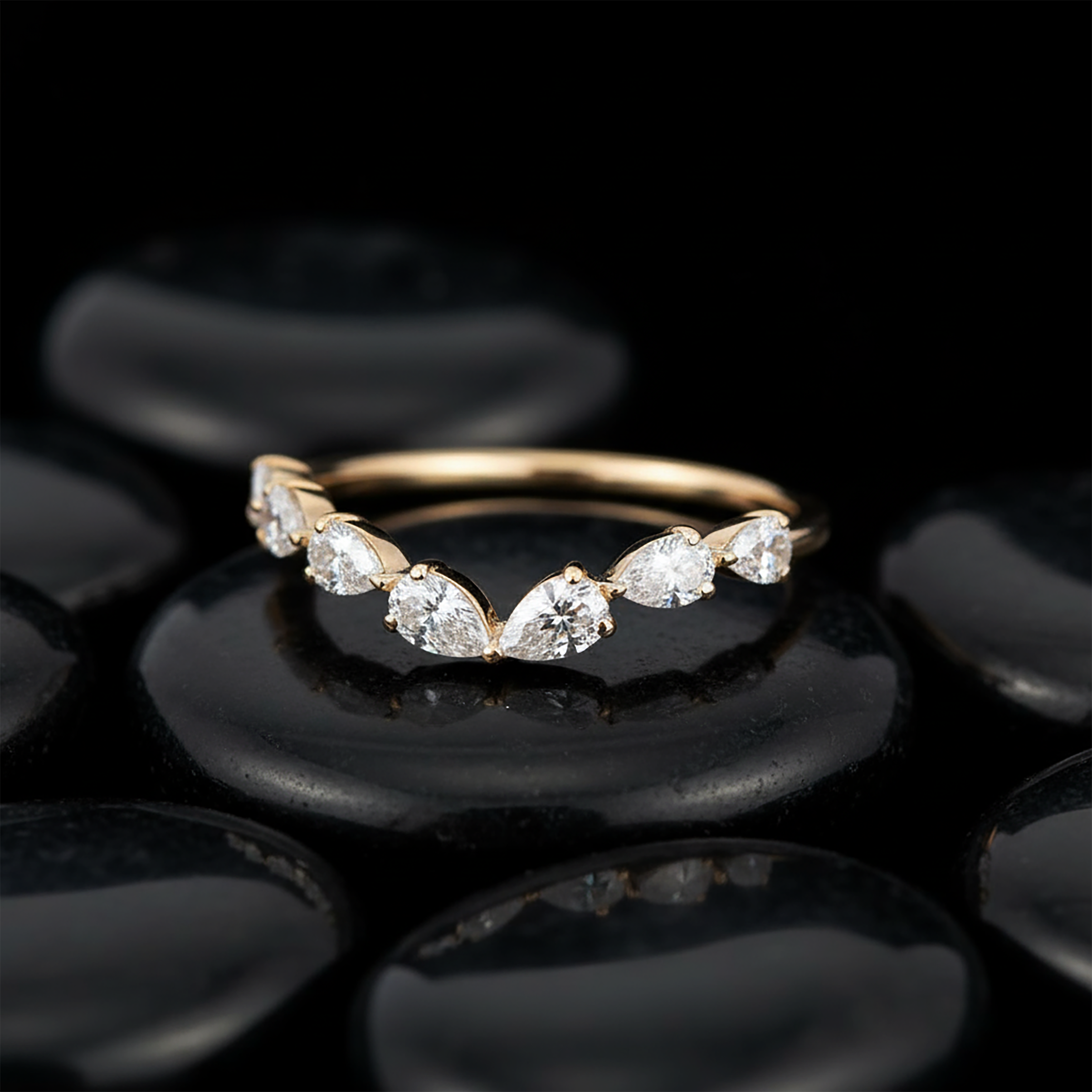 Pear Cut Diamond 14K (or 18k upon request) Yellow Gold Half Eternity Band Ring