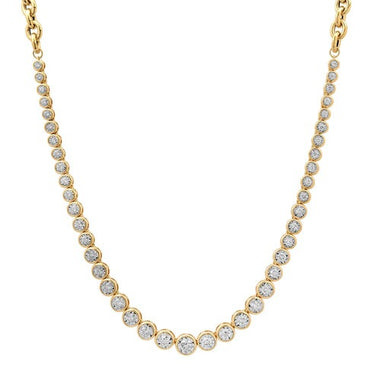 The Baguette Vivid Diamond 14K Yellow Gold Necklace is a captivating display of radiant elegance. Crafted in 14K yellow gold, this striking necklace features natural full-cut diamonds, perfectly arranged to create a swirling, vortex-like effect. Measuring 18 inches in length, this necklace makes a bold statement while maintaining its timeless sophistication. Whether worn alone for a standout look or layered with other pieces, it adds the perfect touch of glamour to any outfit.
