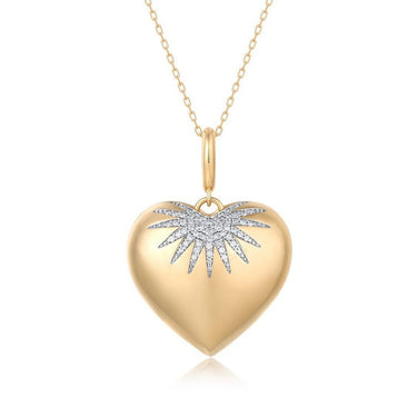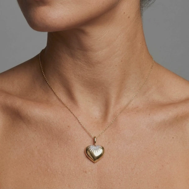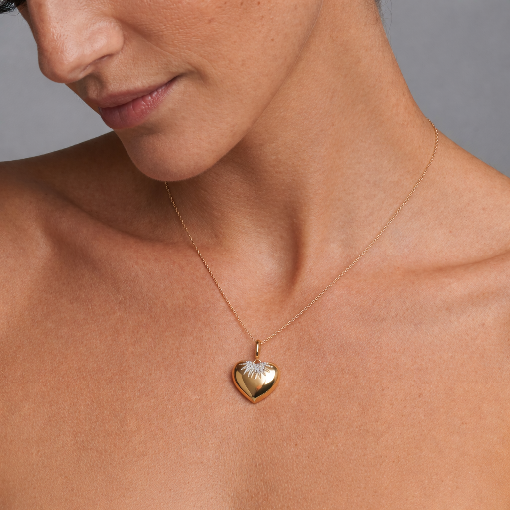 Diamond Fluted Heart 14K (or 18k upon request) Yellow Gold Pendant Necklace