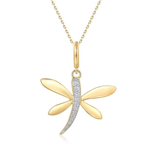 Diamond Full Cut Butterfly 14K (or 18k upon request) Yellow Gold Pendant Necklace