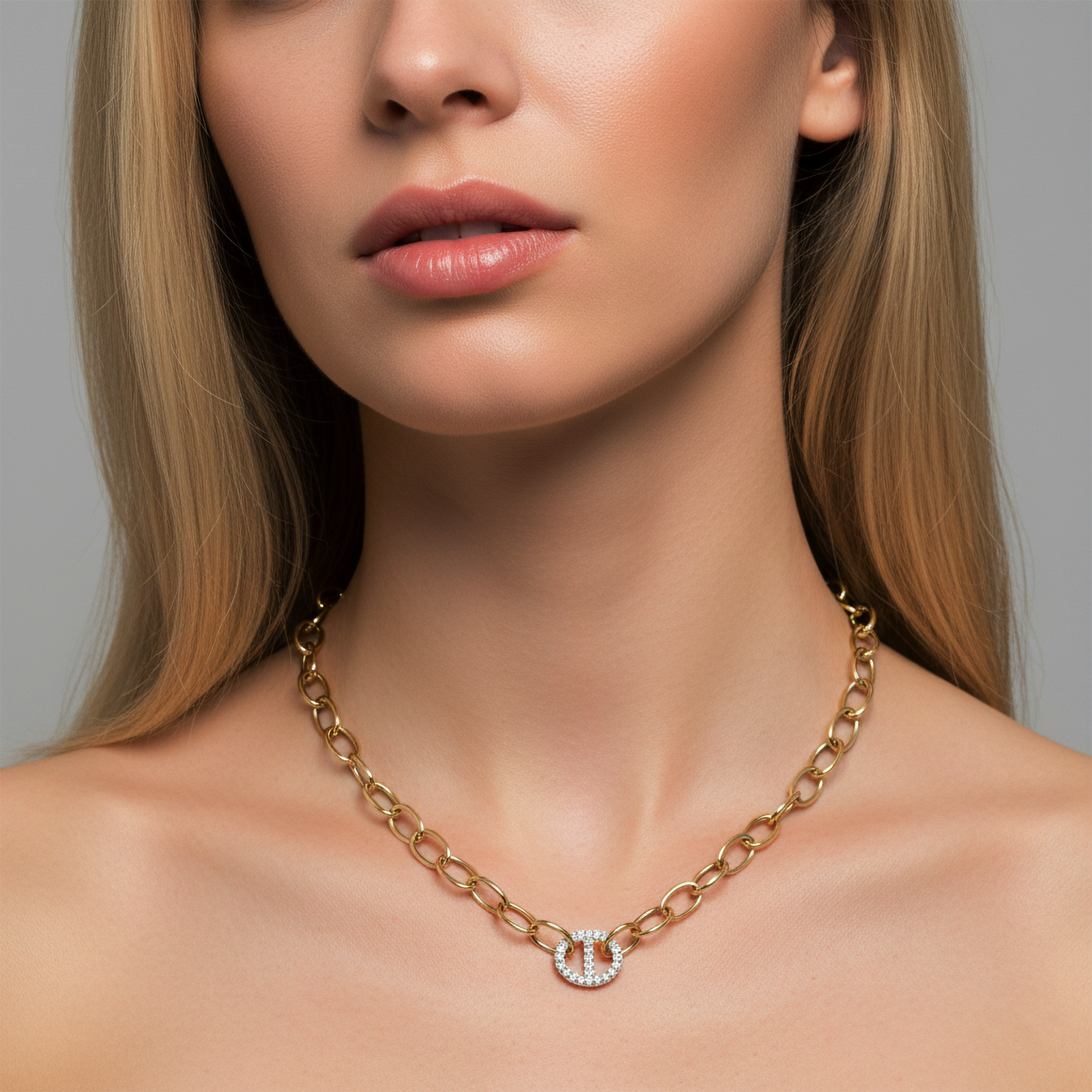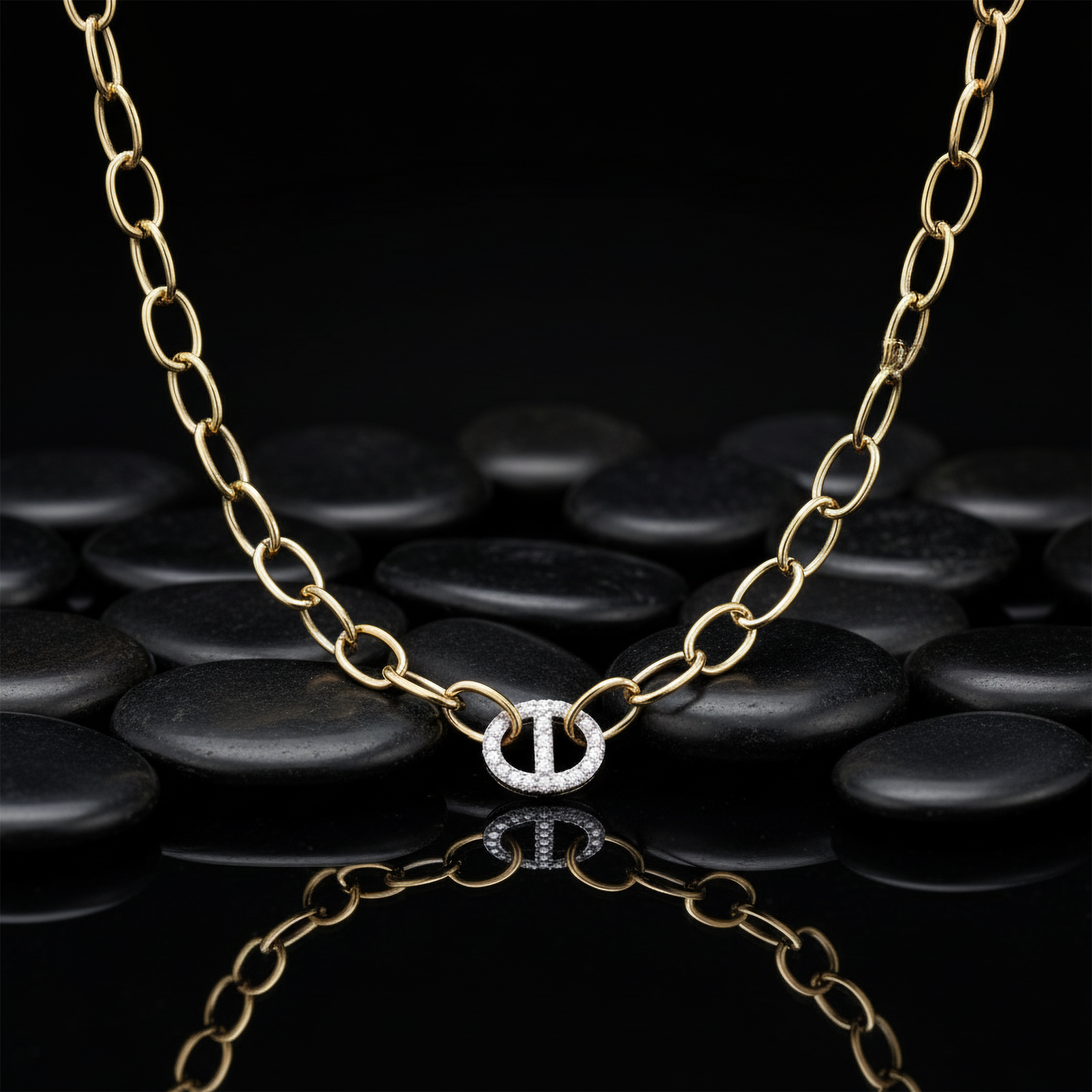 Diamond Link Pendant 14K (or 18k upon request) Yellow Gold Chain Necklace