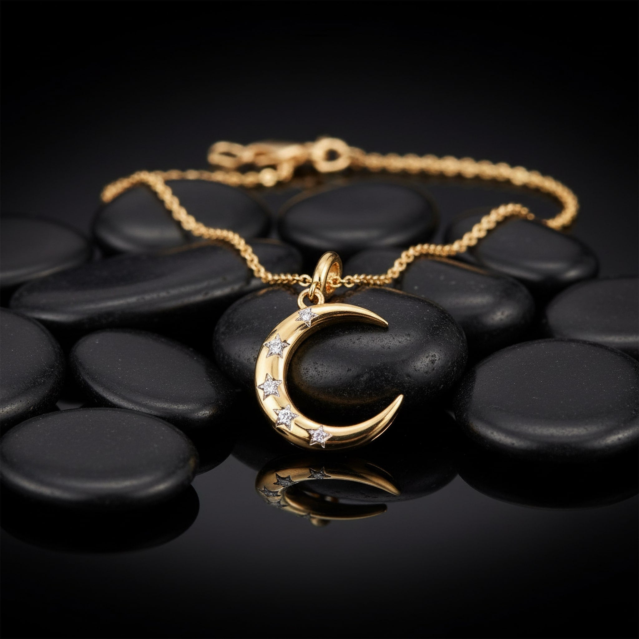 Diamond Star Crescent Moon 14K (or 18k upon request) Yellow Gold Pendant Necklace