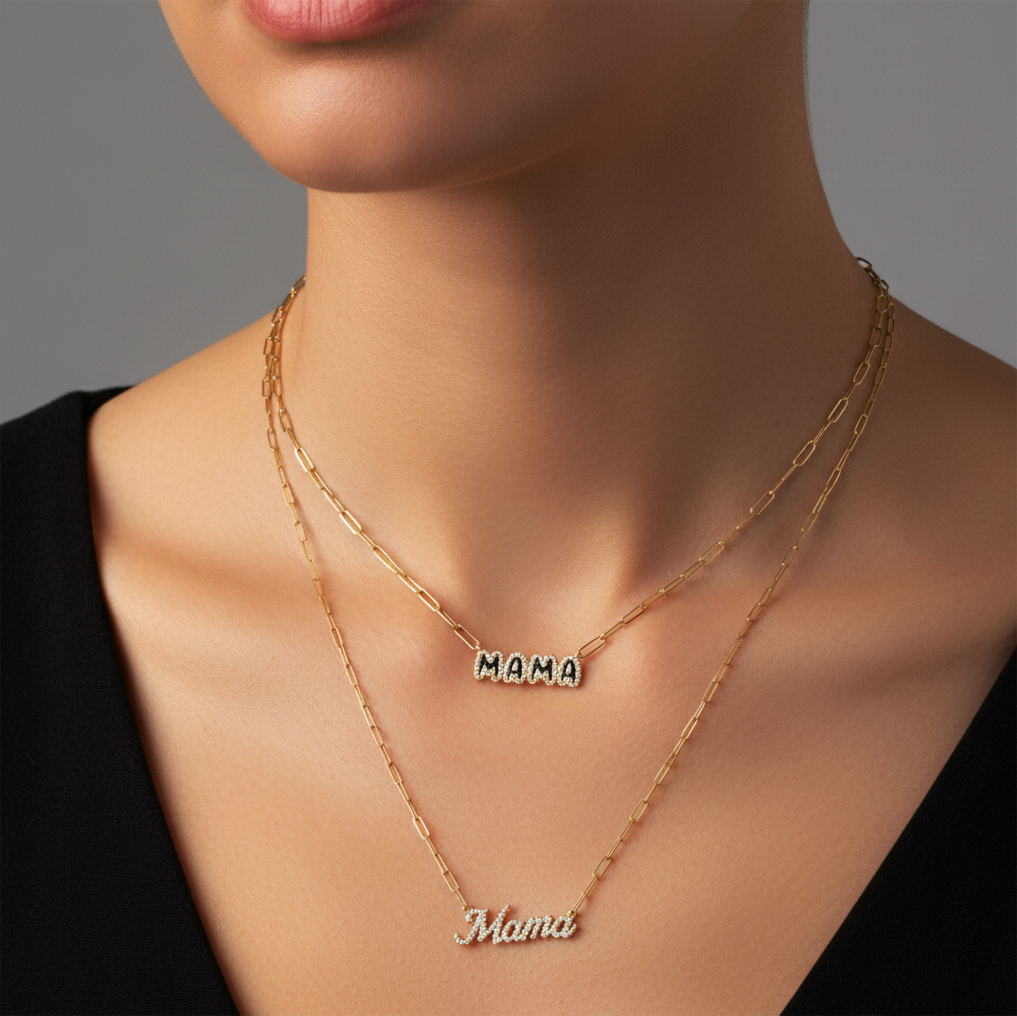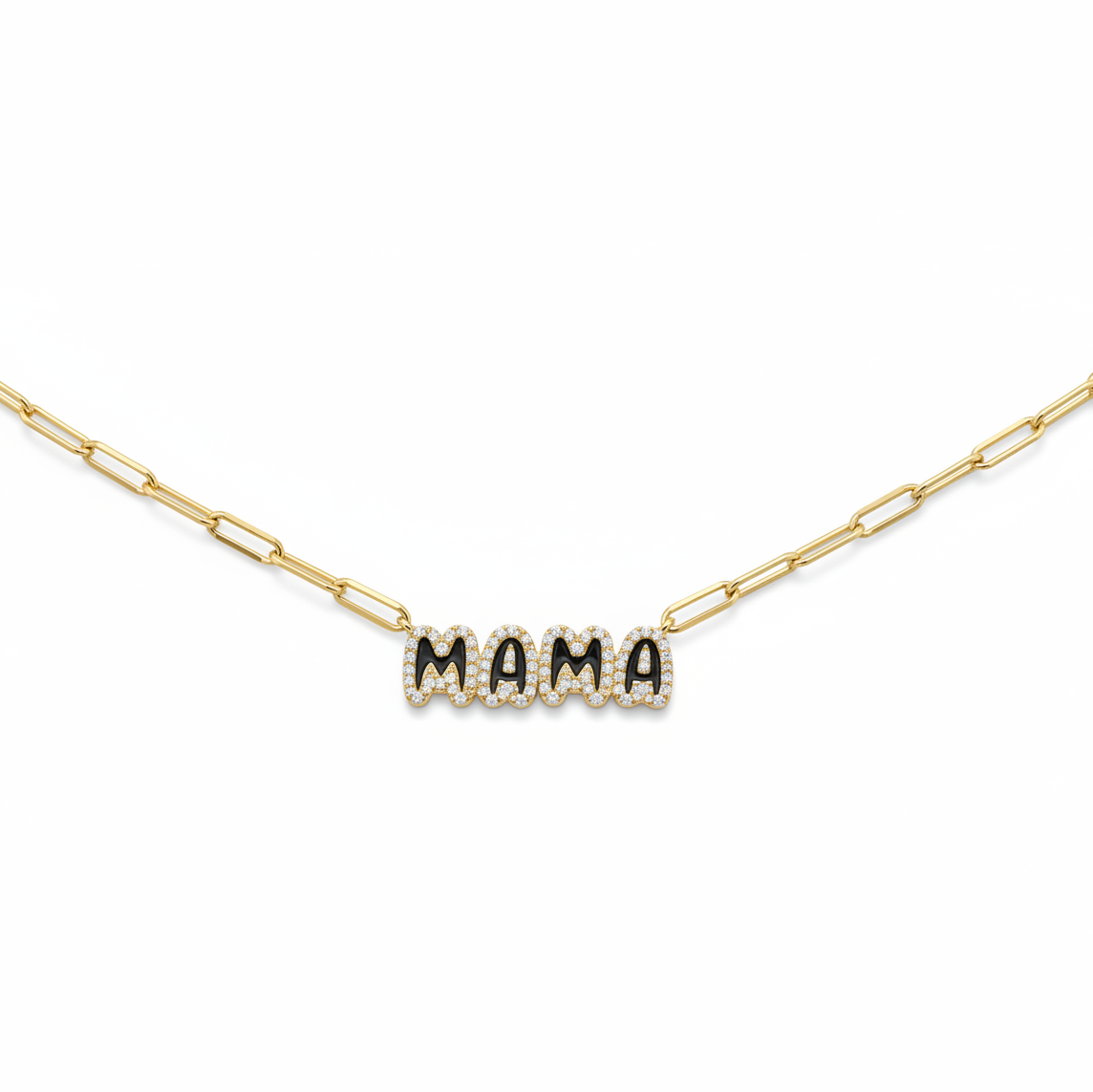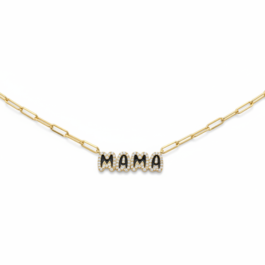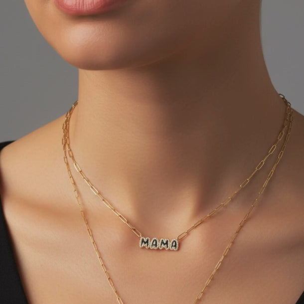 MAMA Letter Pendant 14K (or 18k upon request) Gold Diamond Paperclip Necklace