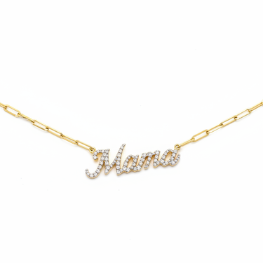 Mama Script 14K (or 18k upon request) Yellow Gold Pave Diamond Pendant Necklace