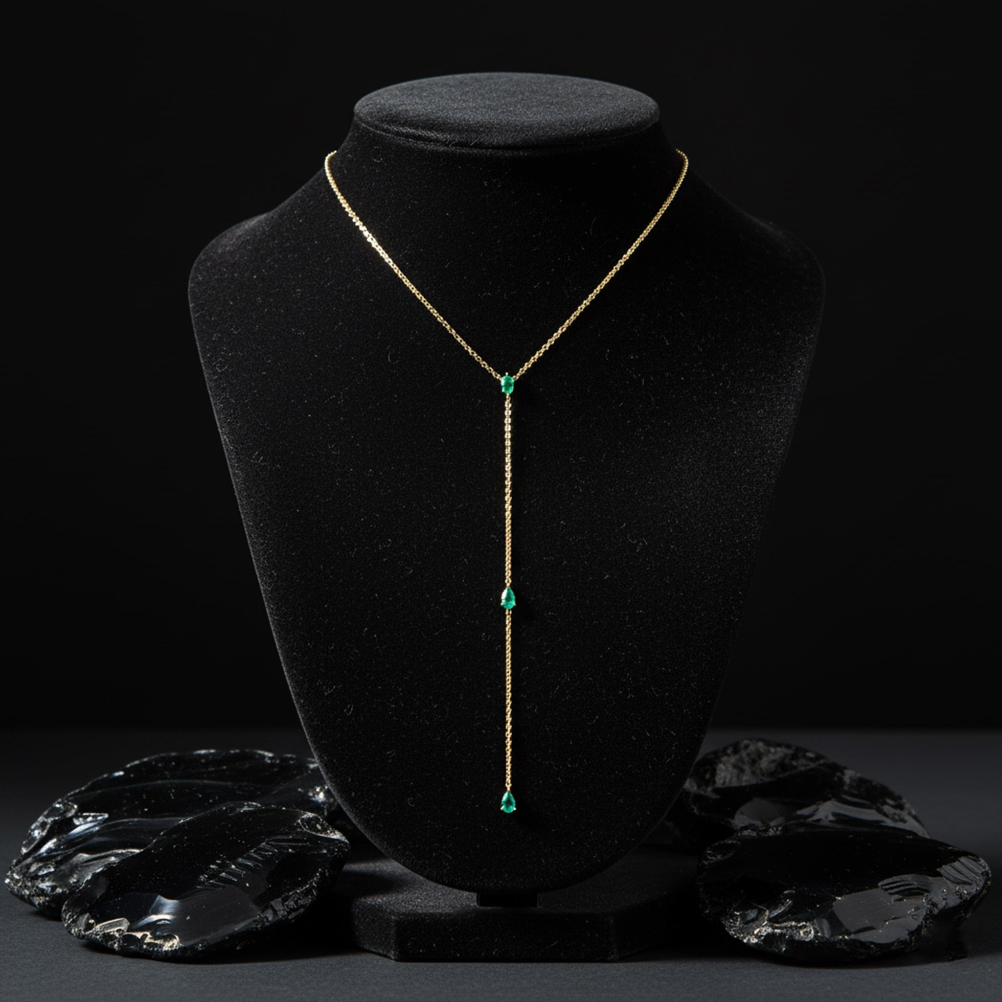 Pear Cut Emerald Drops 14K (or 18k upon request) Yellow Gold Lariat Necklace