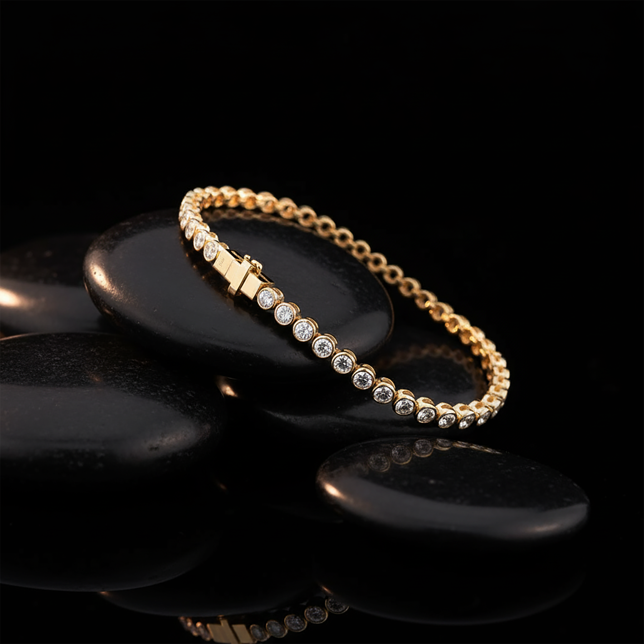 Celestial Curve 14K (or 18k upon request) Yellow Gold Diamond Dot Tennis Bracelet