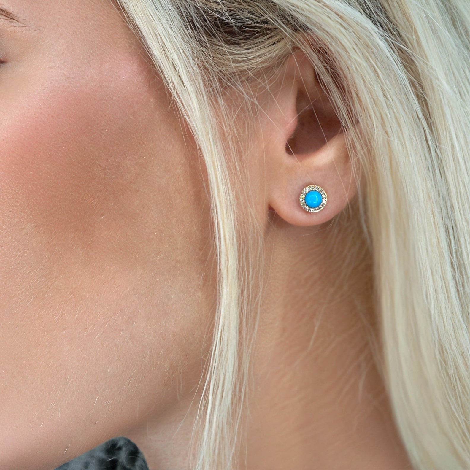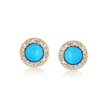 Feminine Turquoise 14K (or 18k upon request) Yellow Gold Diamond Stud Earrings