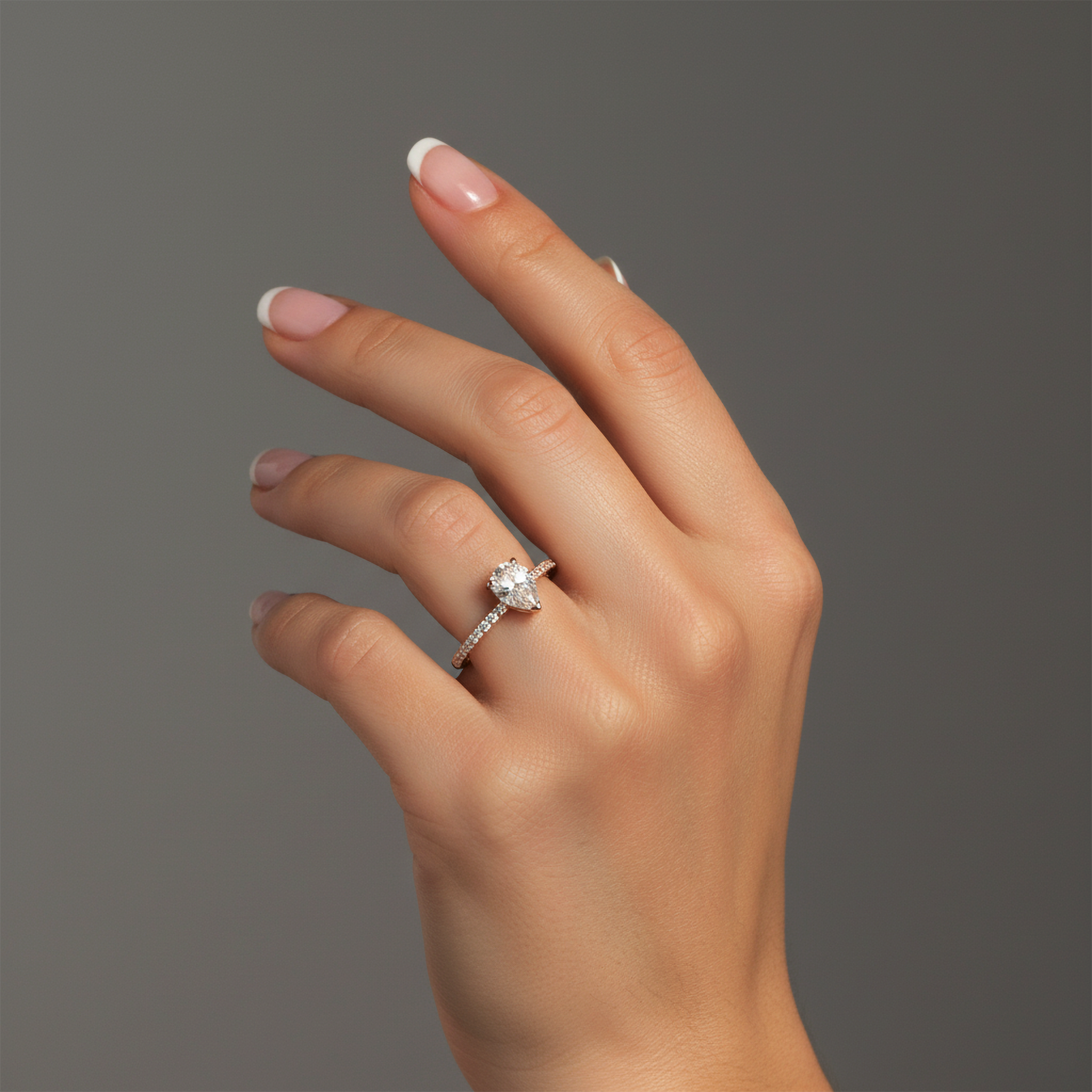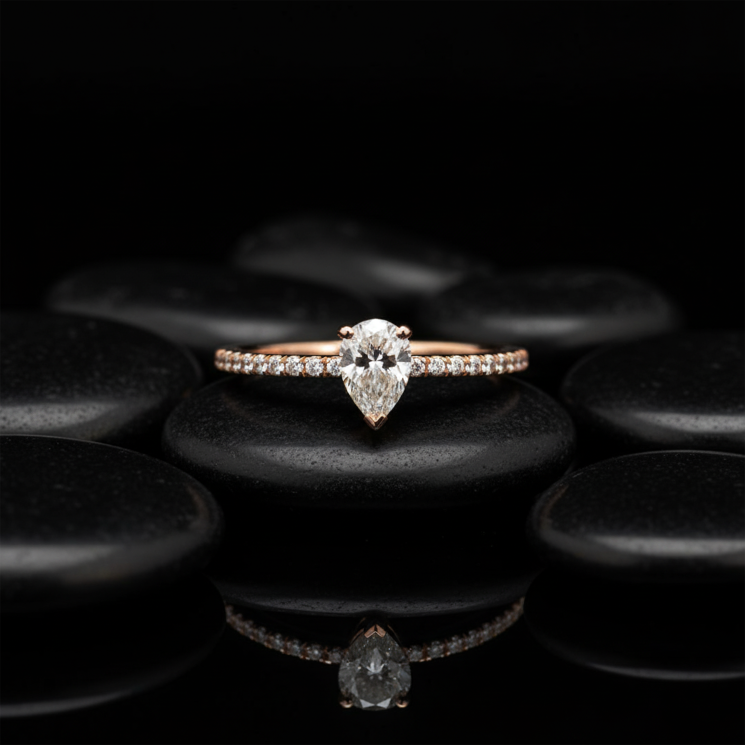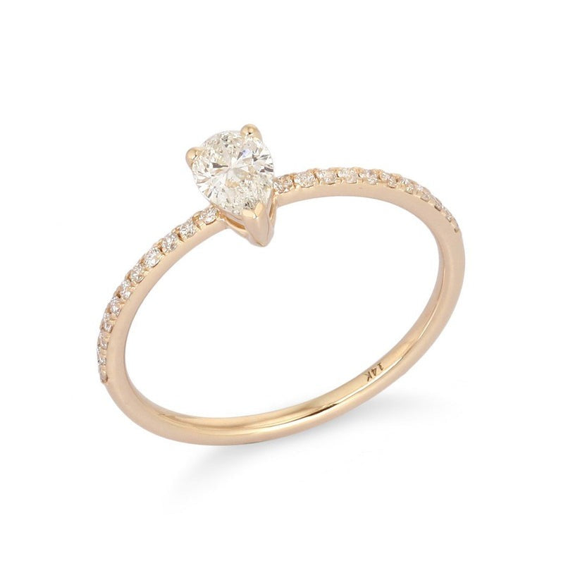 Delicate Solitaire 14K (or 18k upon request) Rose Gold Pear Diamond Ring