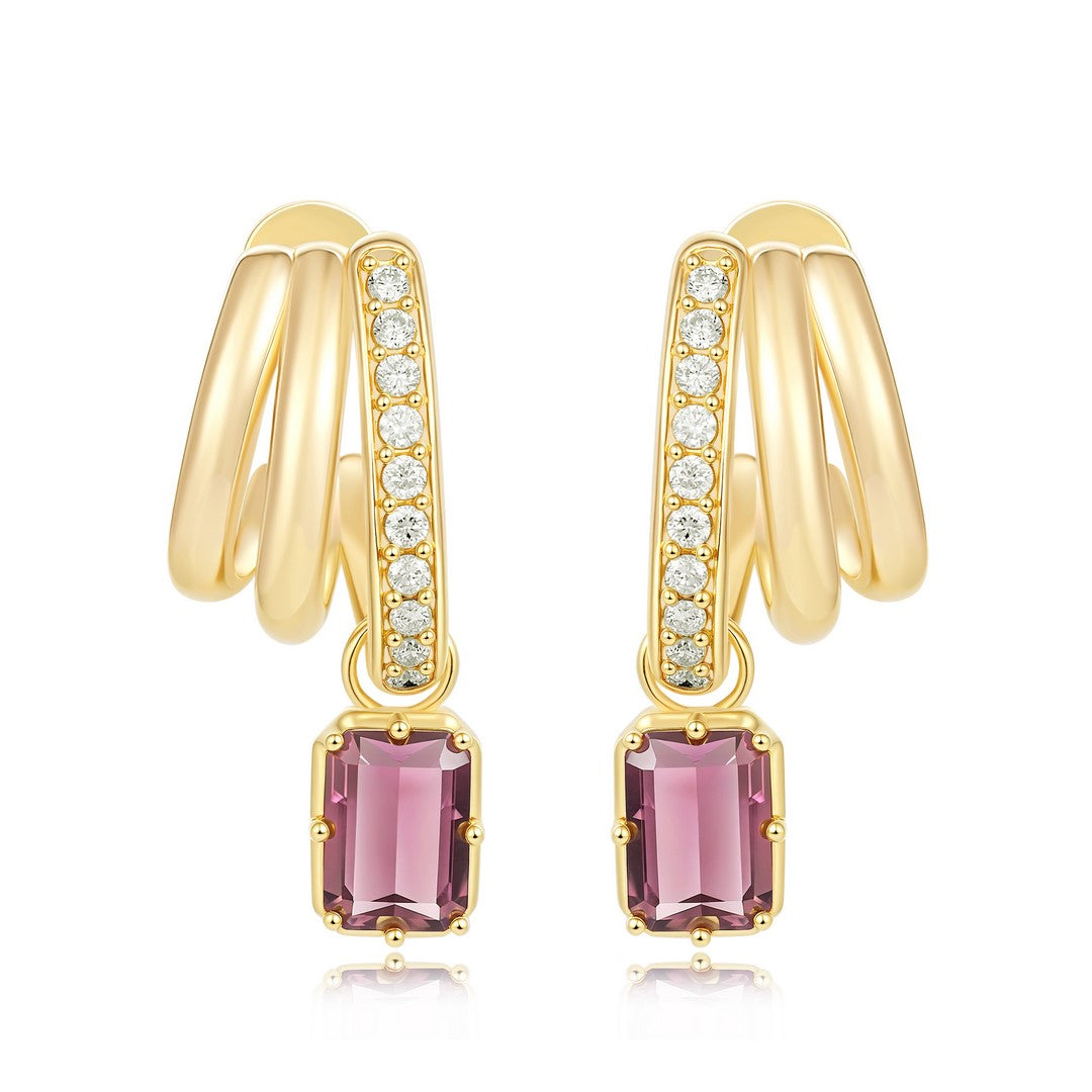 Vibrant and refined, these Emerald-Cut Pink Tourmaline & Diamond Hoop Drop Earrings are a perfect harmony of color and brilliance. Crafted in solid 14K Yellow Gold (available in 18K upon request), each earring showcases a radiant emerald-cut pink tourmaline gracefully suspended from a diamond-accented hoop.
