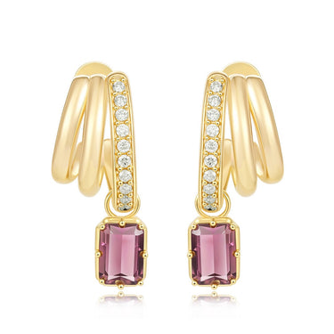 Emerald-Cut Pink Tourmaline 14K (or 18K upon request) Yellow Gold Hoop Drop Earrings