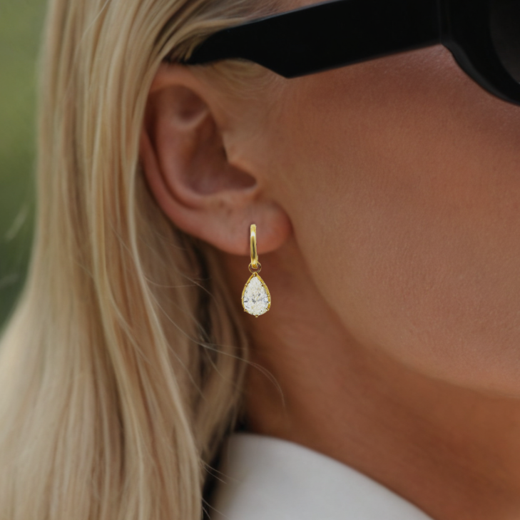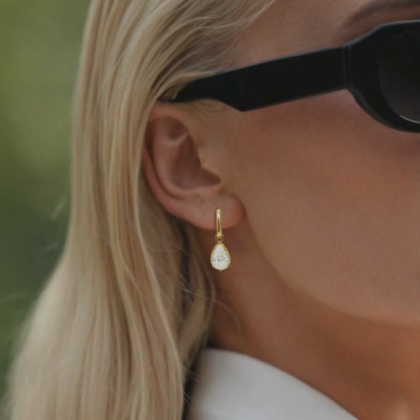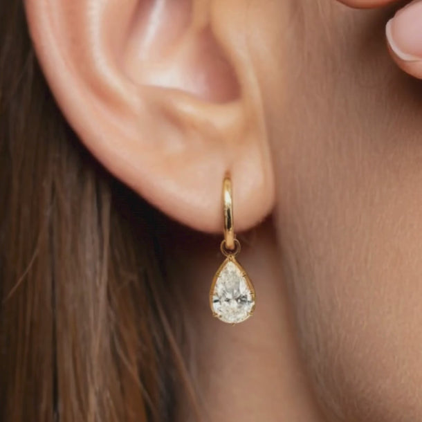 Timeless sophistication meets graceful design in these stunning drop earrings. Crafted in luxurious 14K yellow gold, each earring features a dazzling pear-shaped stone that captures light with every movement. The delicate drop silhouette adds a touch of elongation and elegance, perfect for both everyday refinement and special occasions. Lightweight and comfortable, these earrings offer a refined way to elevate your look with a hint of golden glamour.