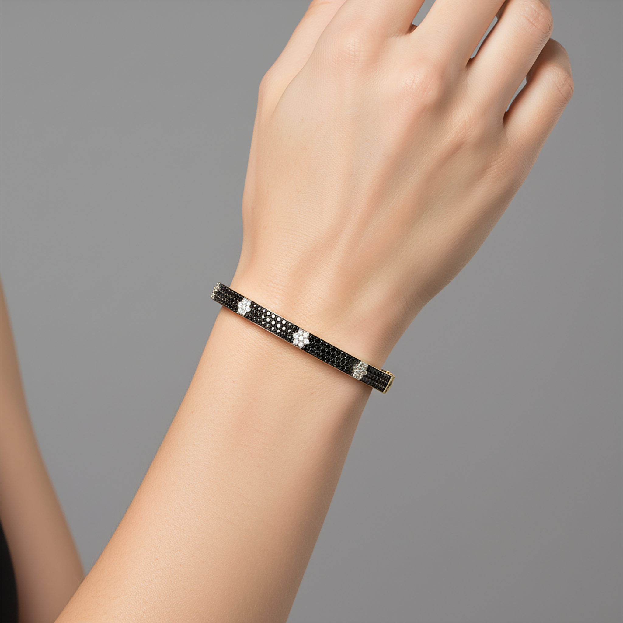 Crafted in 14K yellow gold, this elegant bangle features natural diamonds arranged with precision to exude sophistication. With its lightweight design and radiant sparkle, it offers a perfect blend of timeless beauty and modern charm, ideal for any occasion.