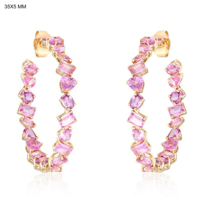 35mm Pink Sapphire 14K (or 18k upon request) Yellow Gold Mixed Cut Hoop Earrings