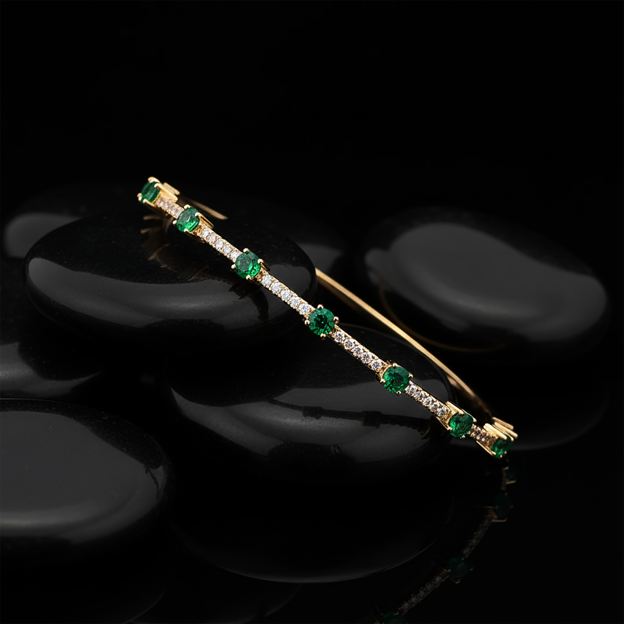 39 Emerald Diamond 14K (or 18k upon request) Yellow Gold Bangle Bracelet