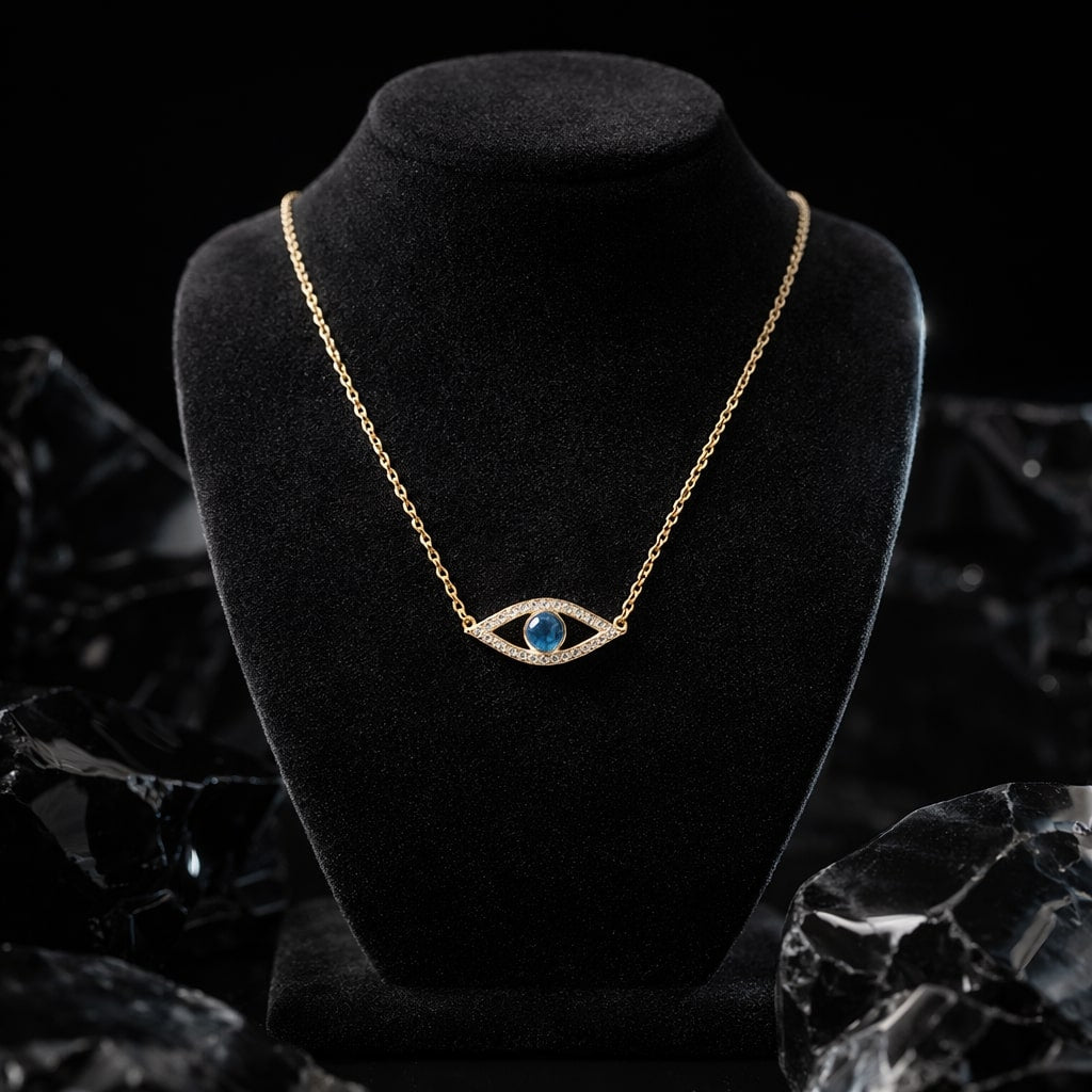 Golden Sapphire 14K (or 18k upon request) Gold Evil Eye Charm Necklace