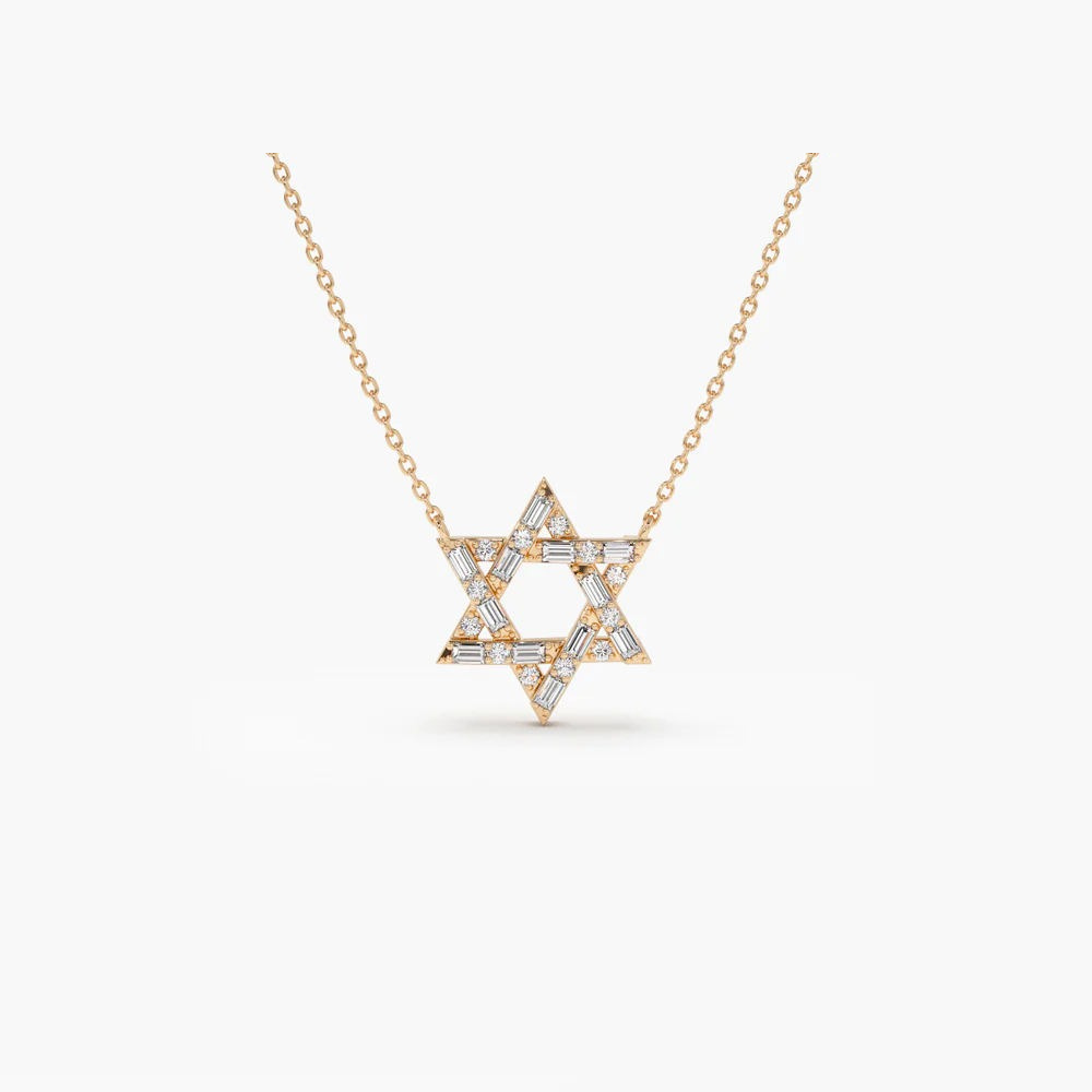 This elegant Heart Centered 14K Gold Star Of David Necklace is a timeless piece that beautifully combines faith and style. The intricate design features a radiant natural diamond heart at the center, symbolizing love and devotion. Crafted in luxurious yellow gold, this necklace adds a touch of sophistication to any outfit while celebrating tradition.