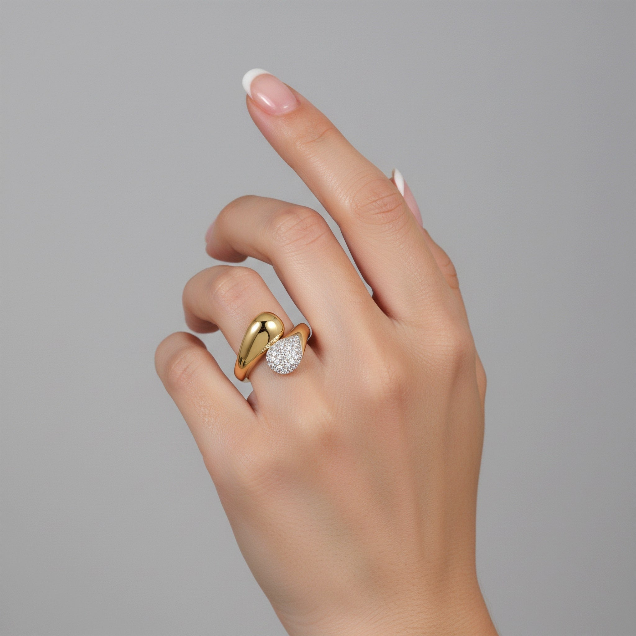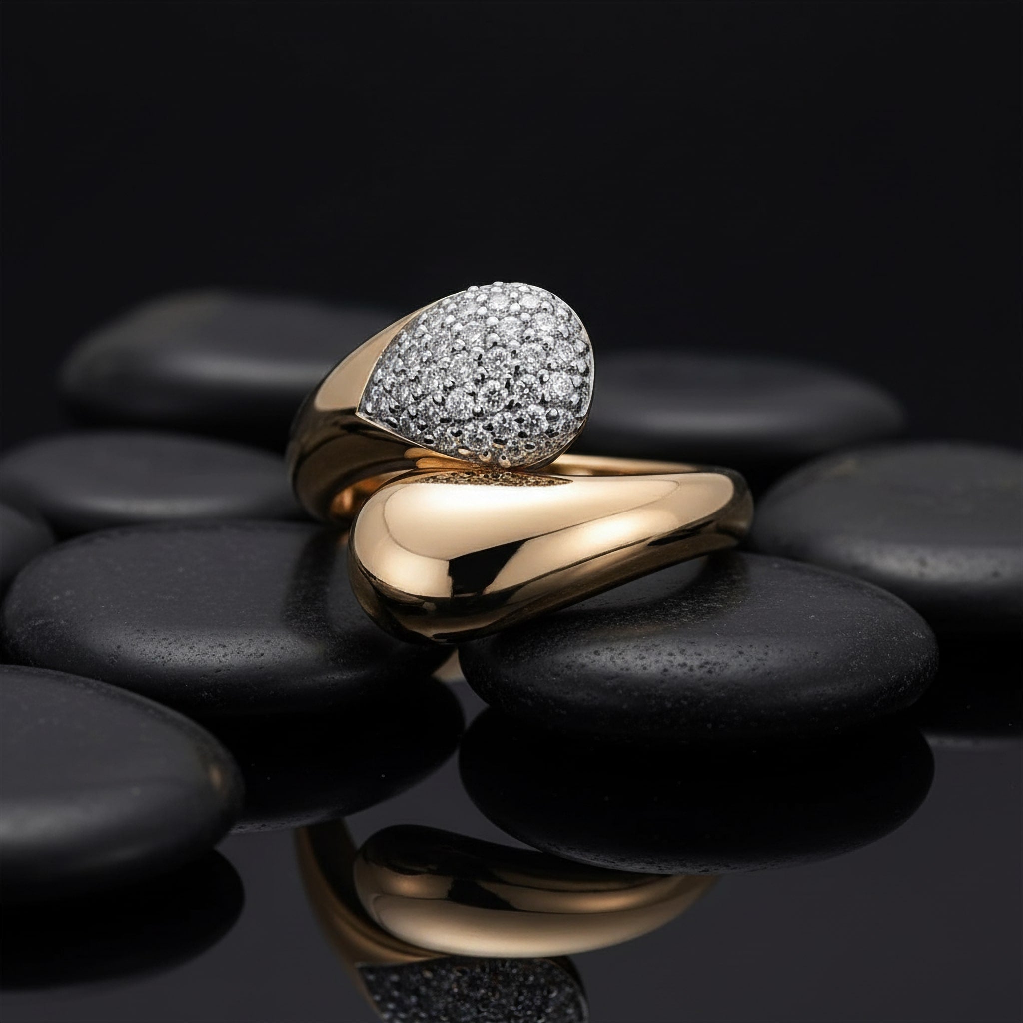 Open Teardrop 18K Yellow Gold Pave Diamond Ring