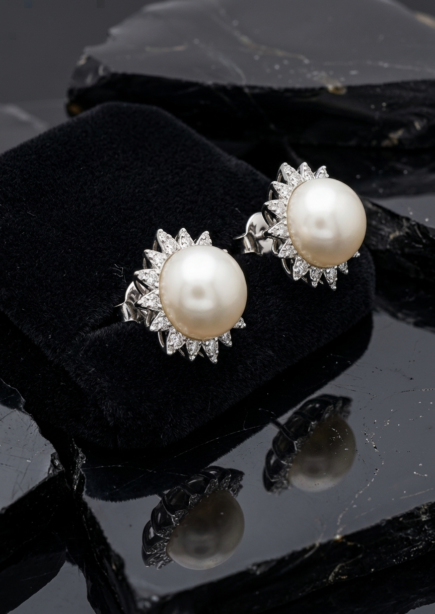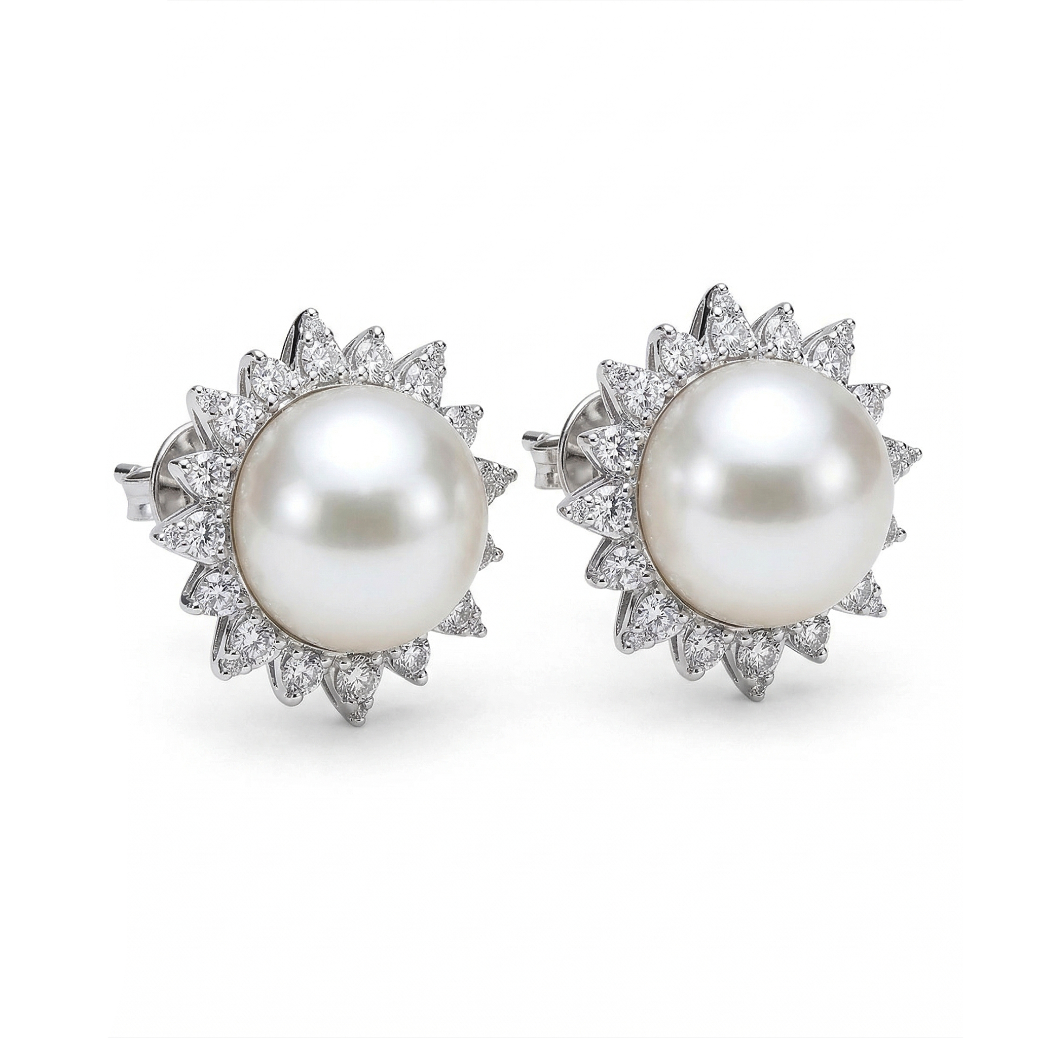 Timeless elegance meets modern luxury in this stunning pearl halo statement ring, crafted in solid 14K white gold. At its center sits a luminous, high-quality pearl, beautifully surrounded by a radiant halo of sparkling diamond accents in a sunburst-inspired design. Designed to stand out, this ring adds a sophisticated touch to both everyday wear and special occasions, while the refined setting enhances the pearl’s natural glow for a look that is both classic and bold. Carefully crafted for durability and comfort, it makes a meaningful addition to any jewelry collection or a perfect gift for someone special.