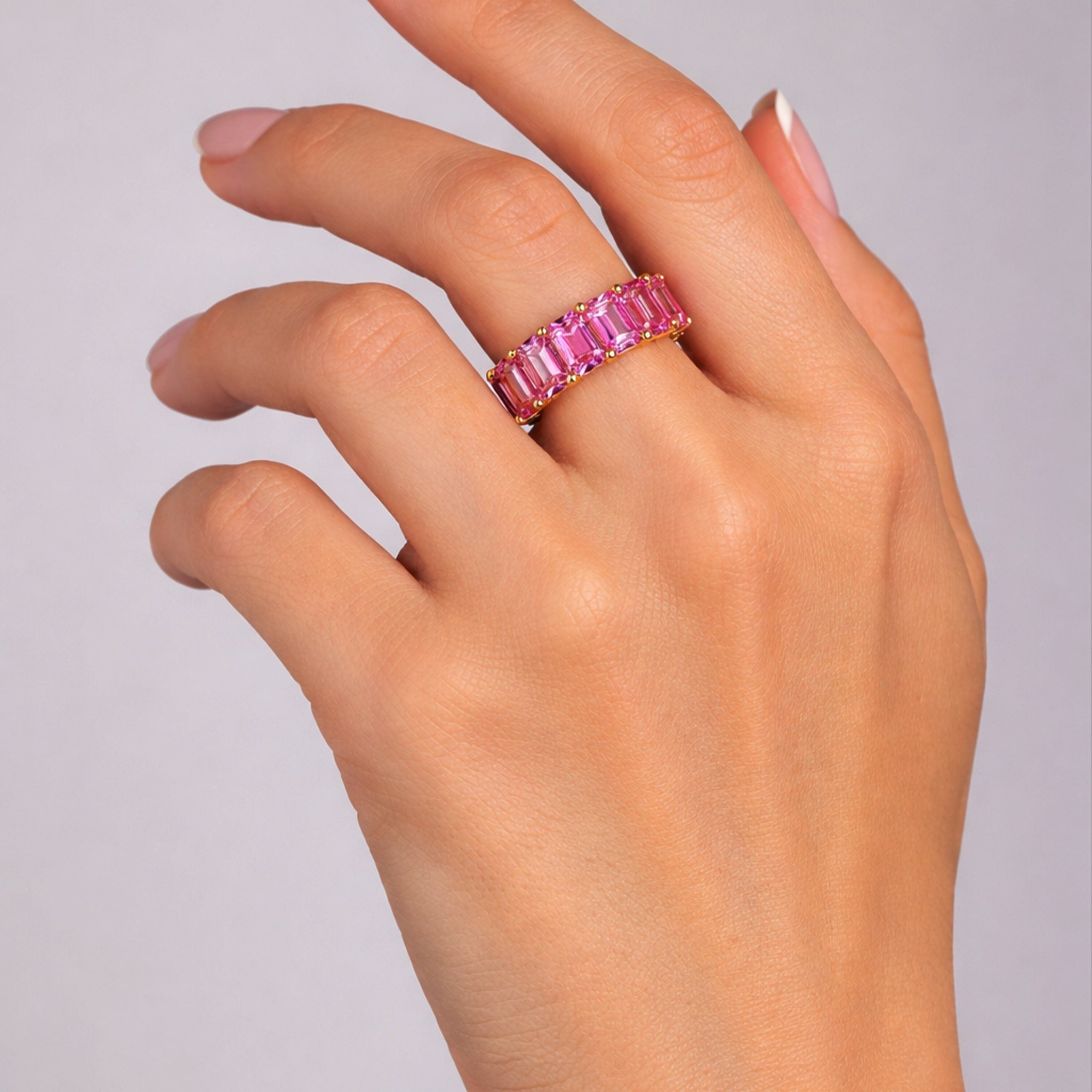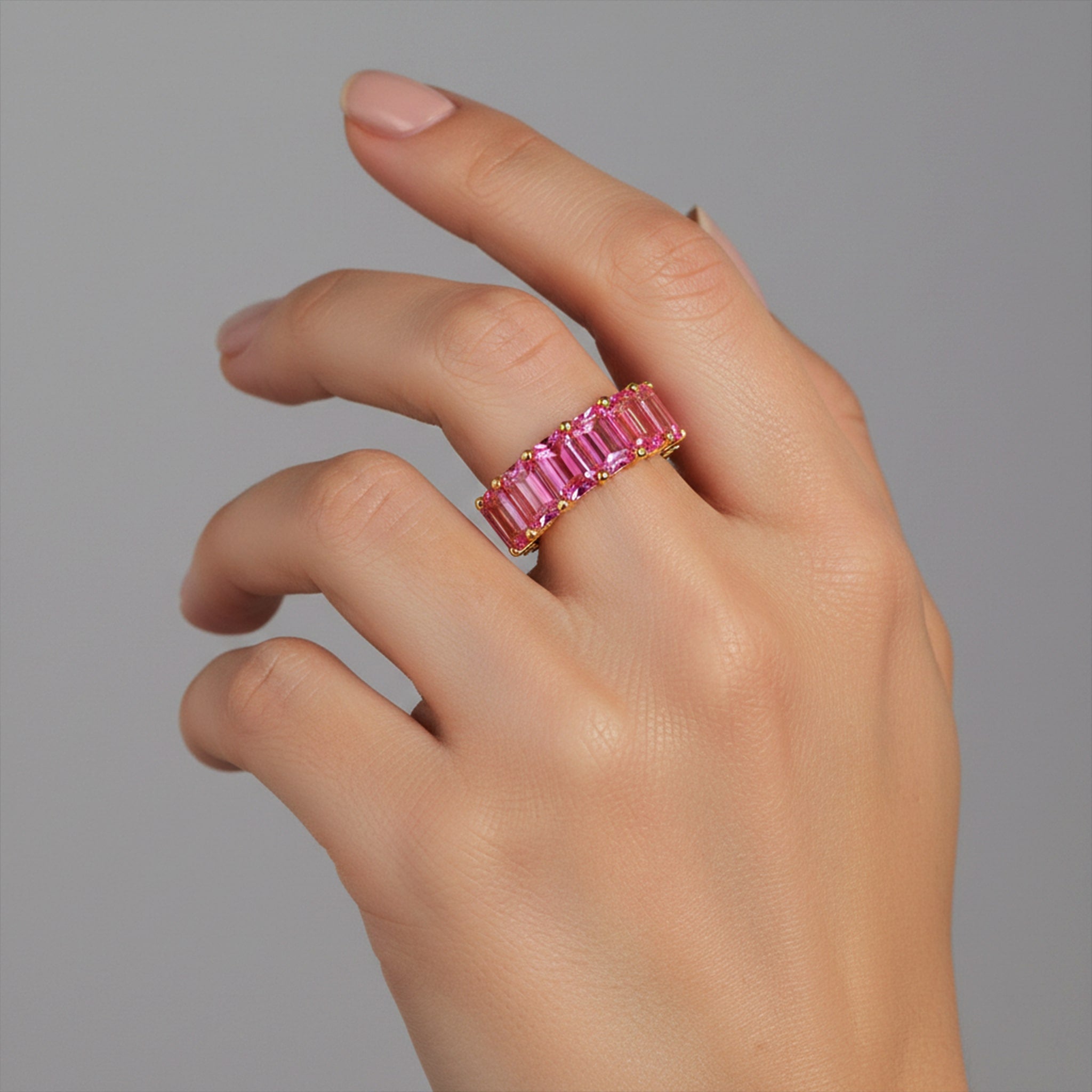 The Pink Sapphire 14K (or 18K upon request) Yellow Gold Diamond Ring is a captivating fusion of elegance and color. Featuring a rich pink sapphire at its center, this ring is beautifully complemented by pavé-set diamonds along the band. Crafted in 14K yellow gold (18K available upon request), it radiates warmth and sophistication with every turn.