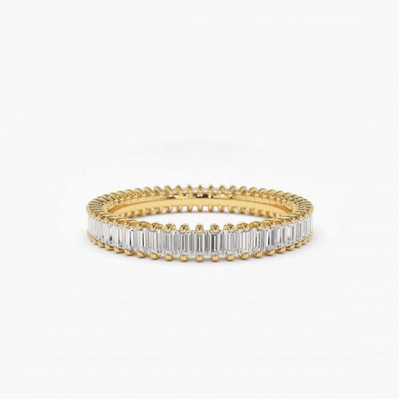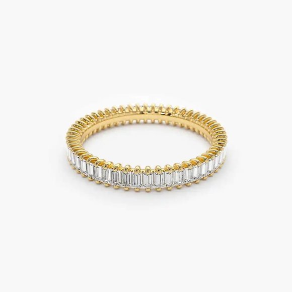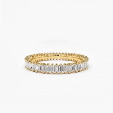 This stunning ring combines timeless elegance with modern style. Featuring a mix of gold and silver, the band is adorned with beautifully cut baguette diamonds that catch the light with every movement. A perfect accessory to elevate any look, this piece radiates sophistication and luxury, making it an ideal choice for engagements, anniversaries, or special occasions. Crafted with precision, it is designed to stand the test of time.